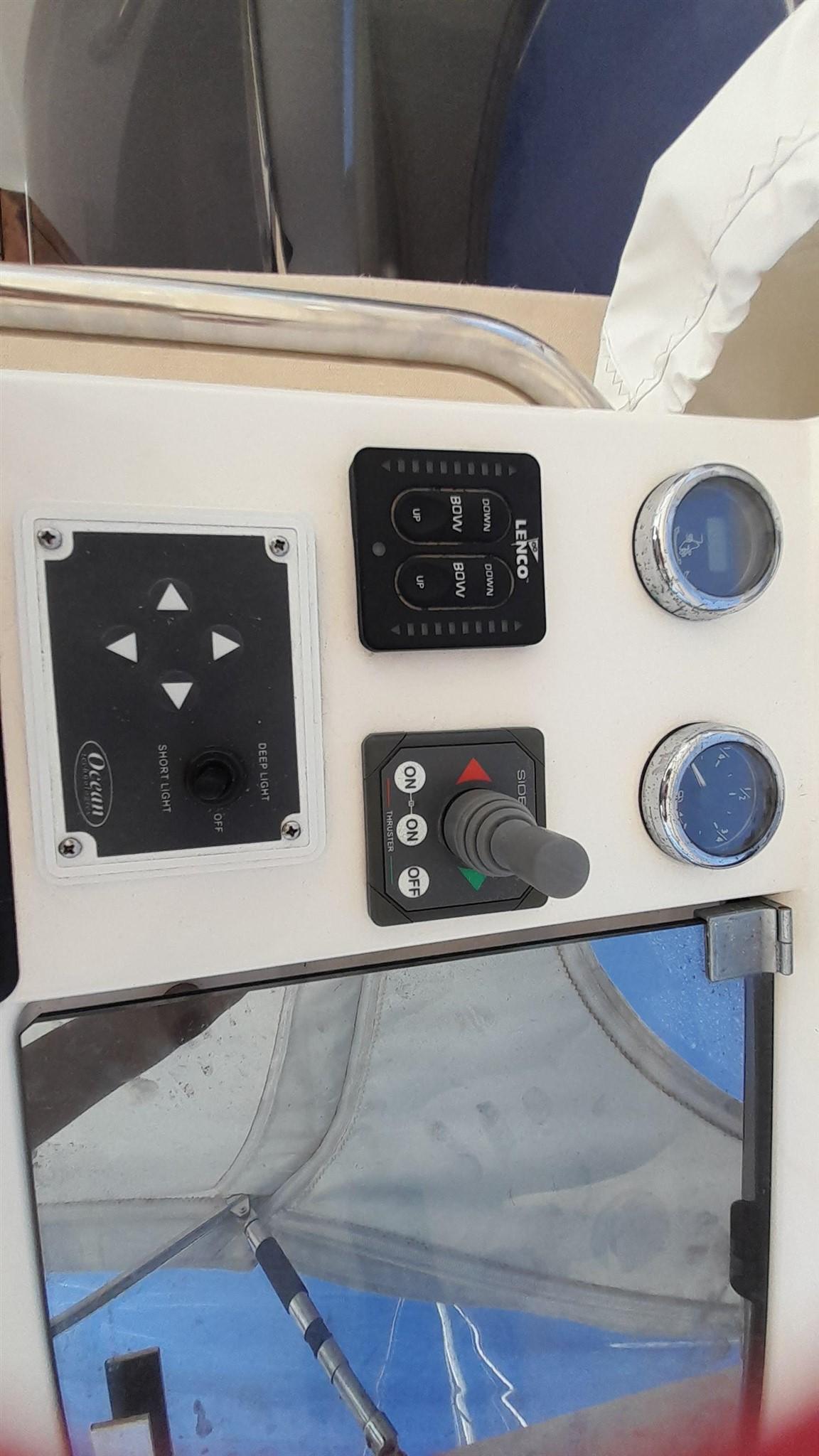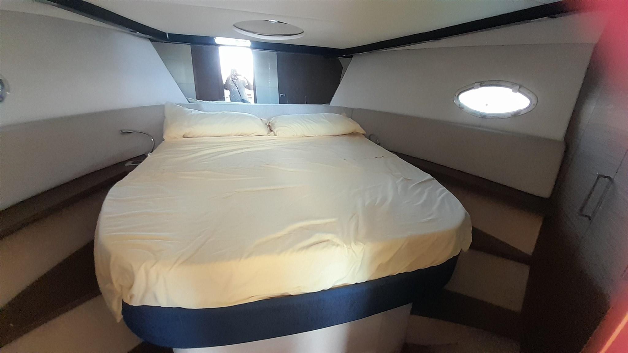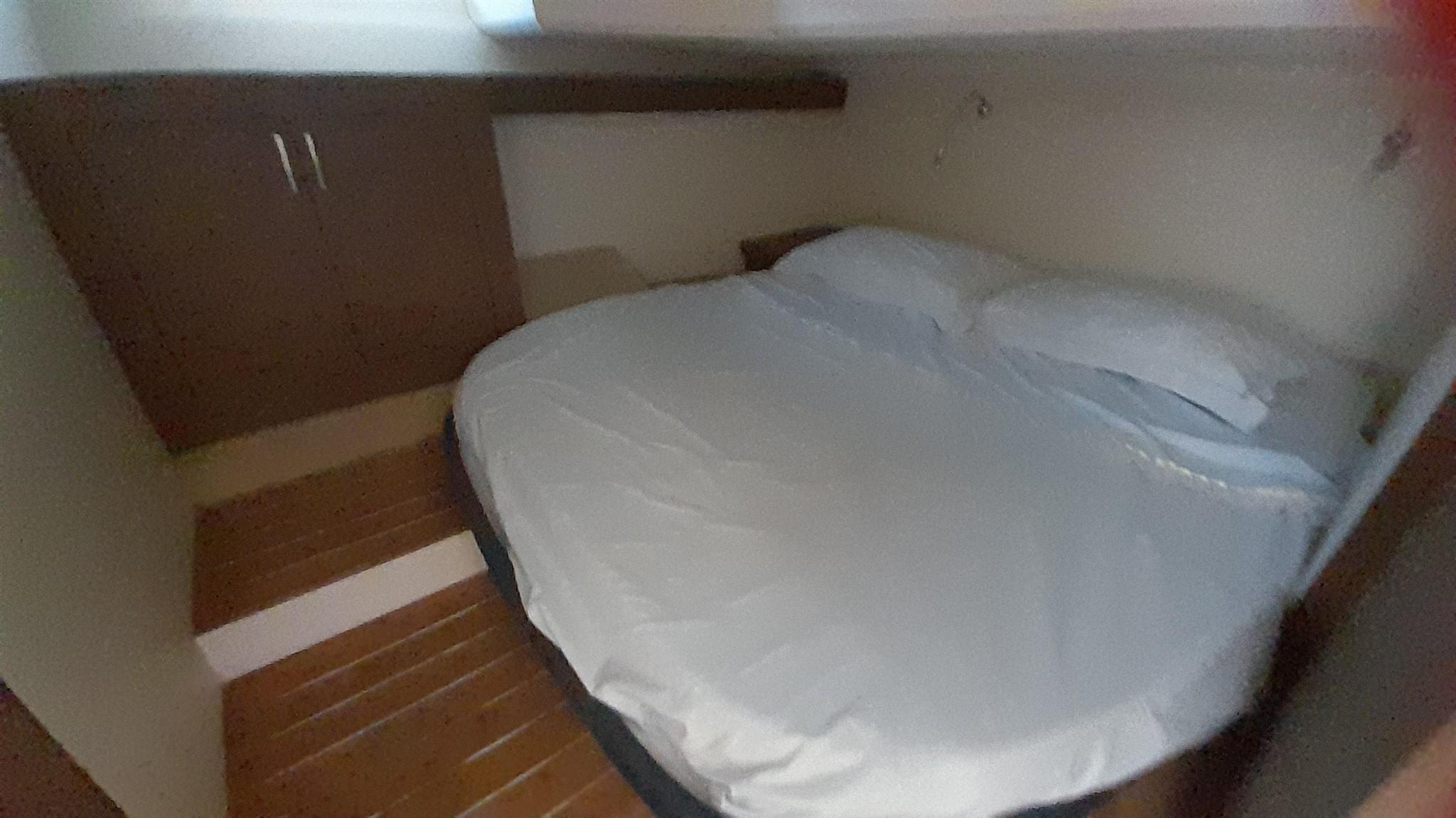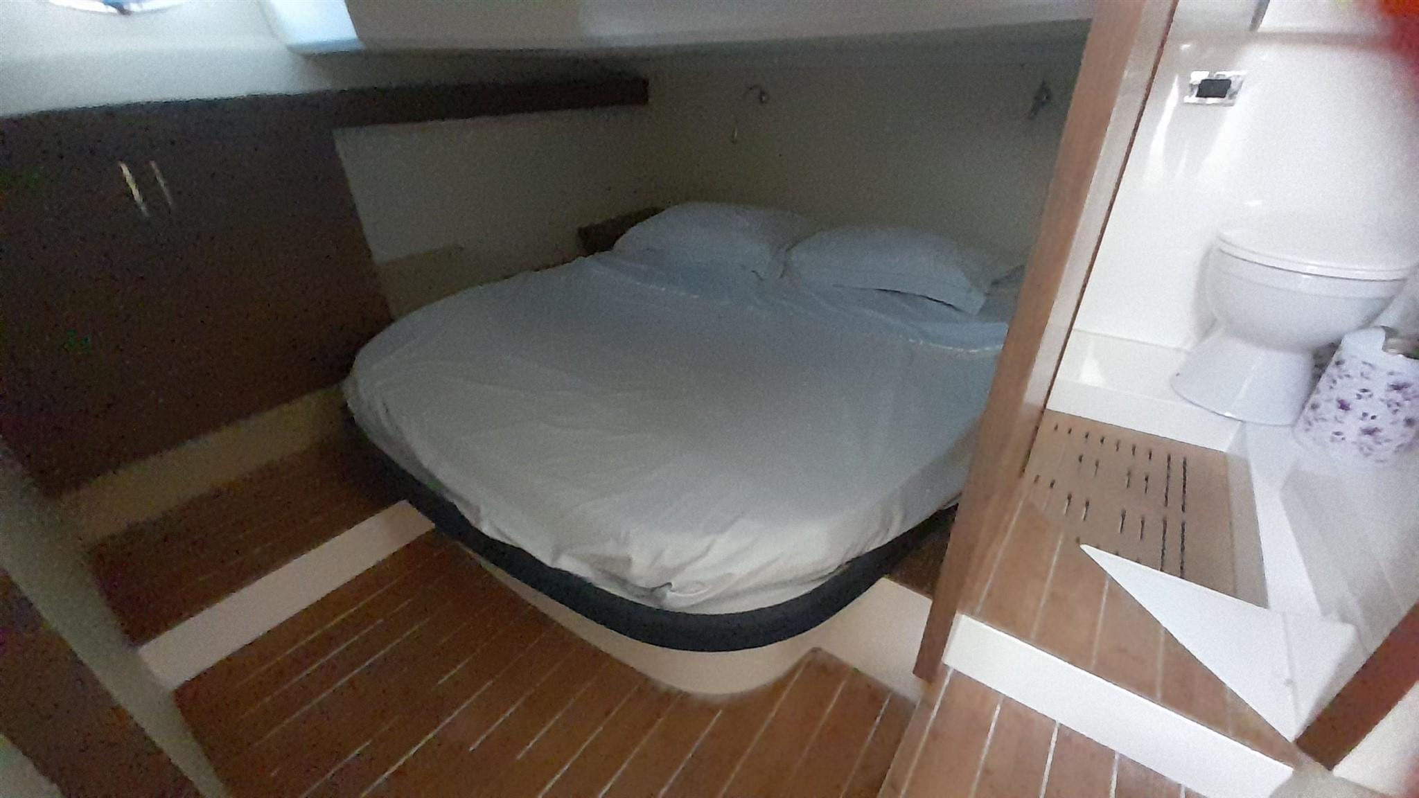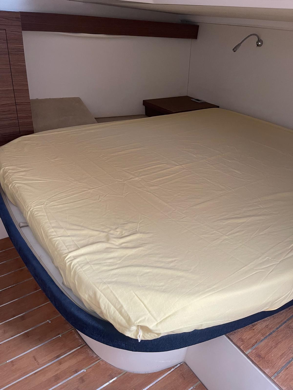 Gli interni, distribuiti su una lunghezza complessiva di circa 11 metri, offrono due cabine indipendenti, ognuna con il proprio bagno, un elemento raro in questa categoria di imbarcazioni. Il cuore dell’ambiente interno è rappresentato da una dinette ampia e luminosa, arredata con gusto contemporaneo e dotata di divano trasformabile in letto, ideale per ospitare in modo comodo anche eventuali ospiti aggiuntivi.