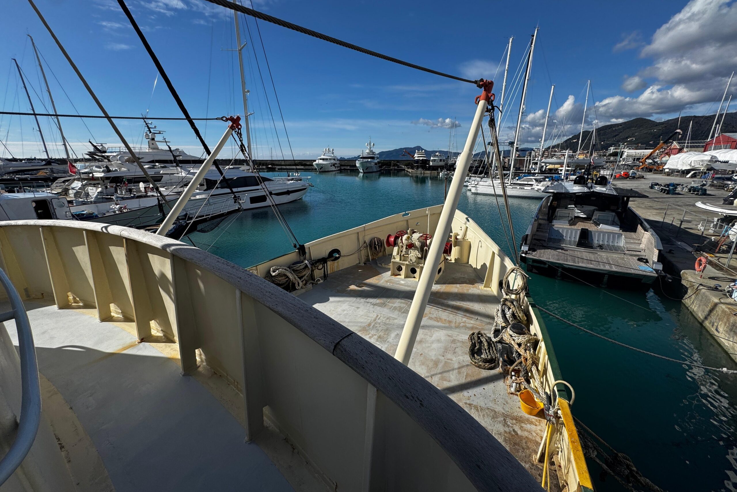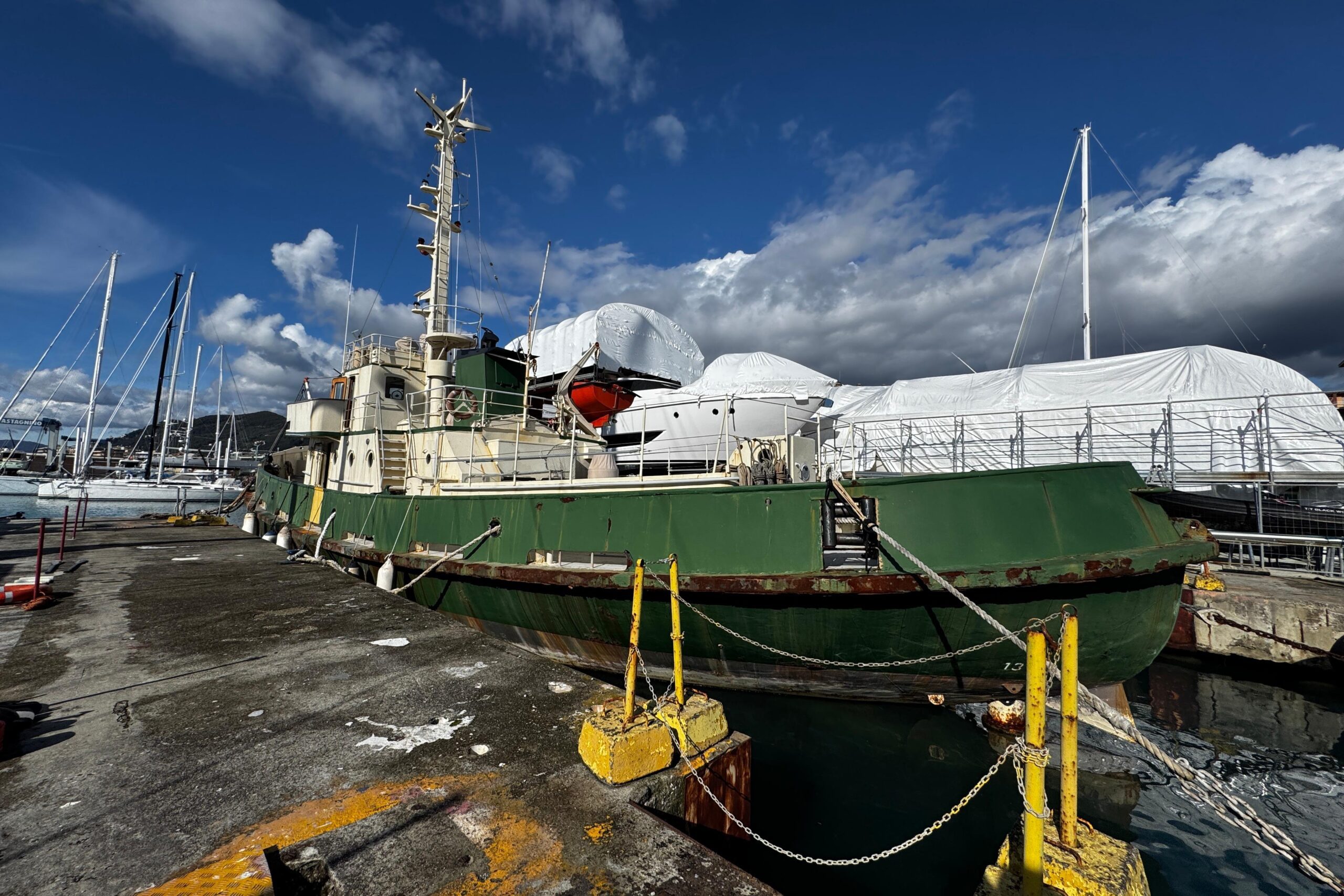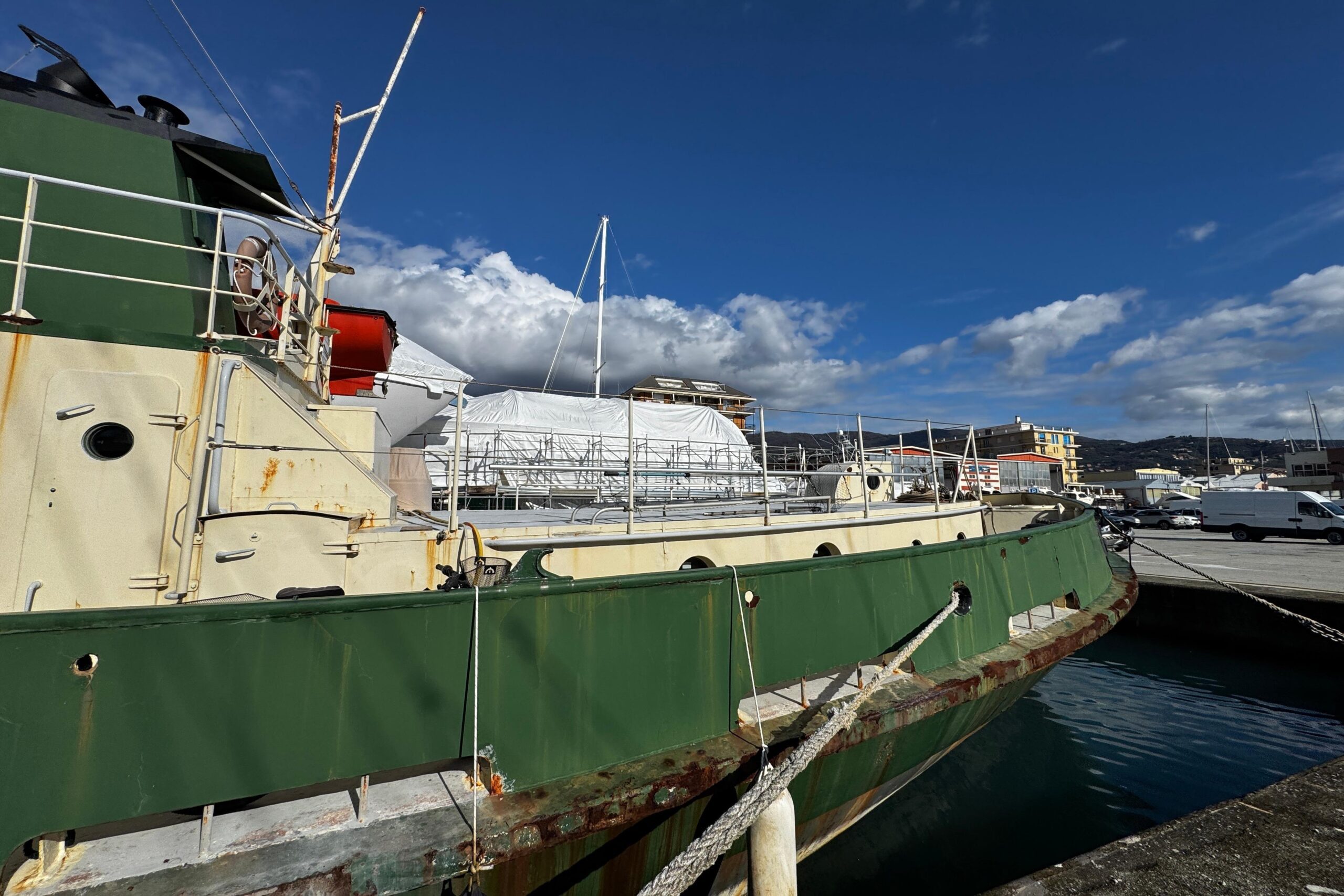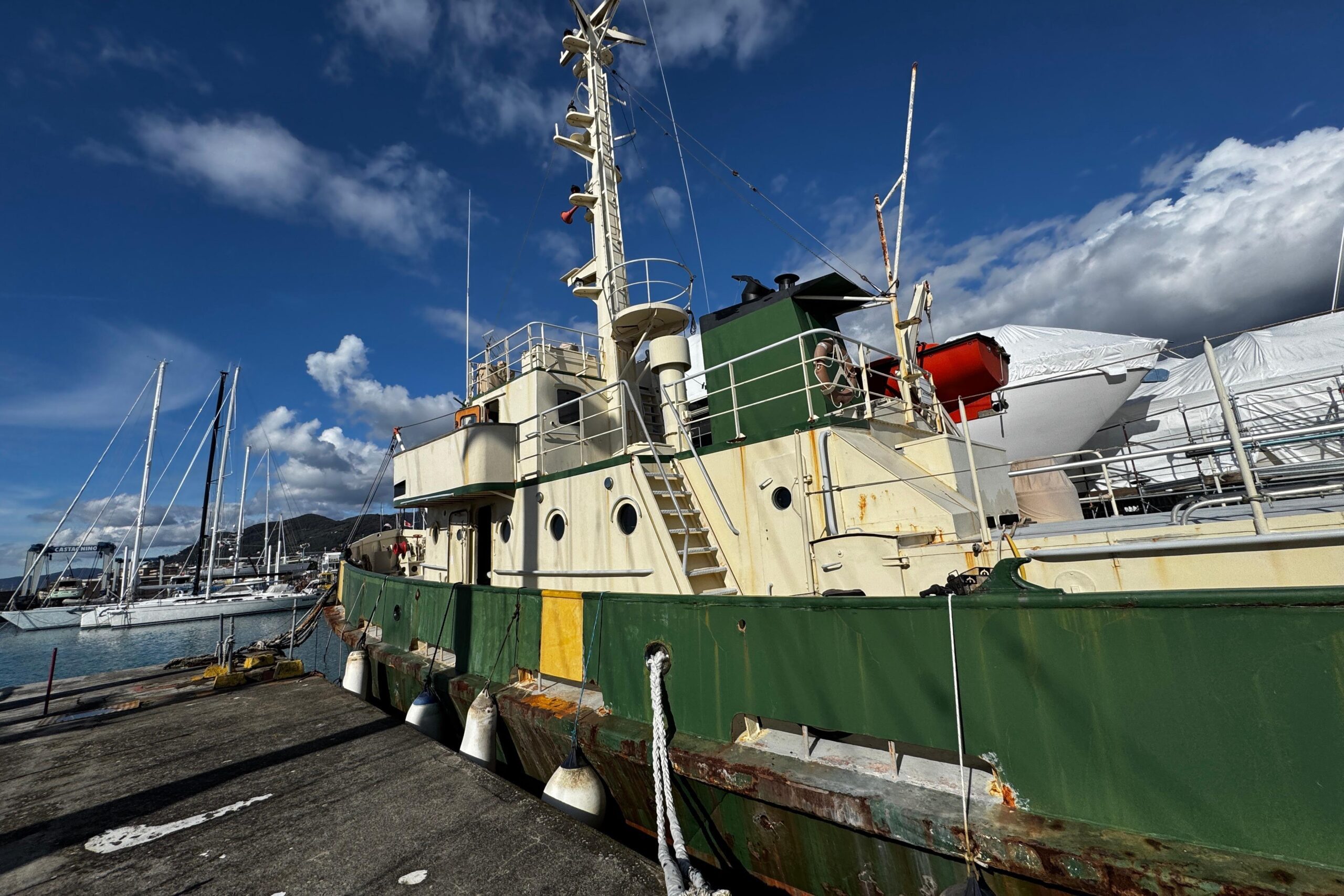 È inoltre disponibile il pacchetto originale di strumentazione di bordo, pronto per essere reinstallato. Gli impianti sono da completare, offrendo così massima libertà progettuale per il futuro armatore o investitore.
