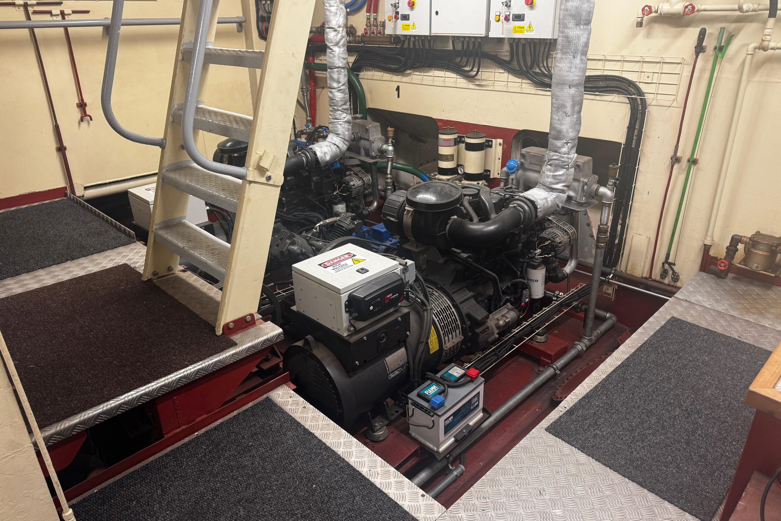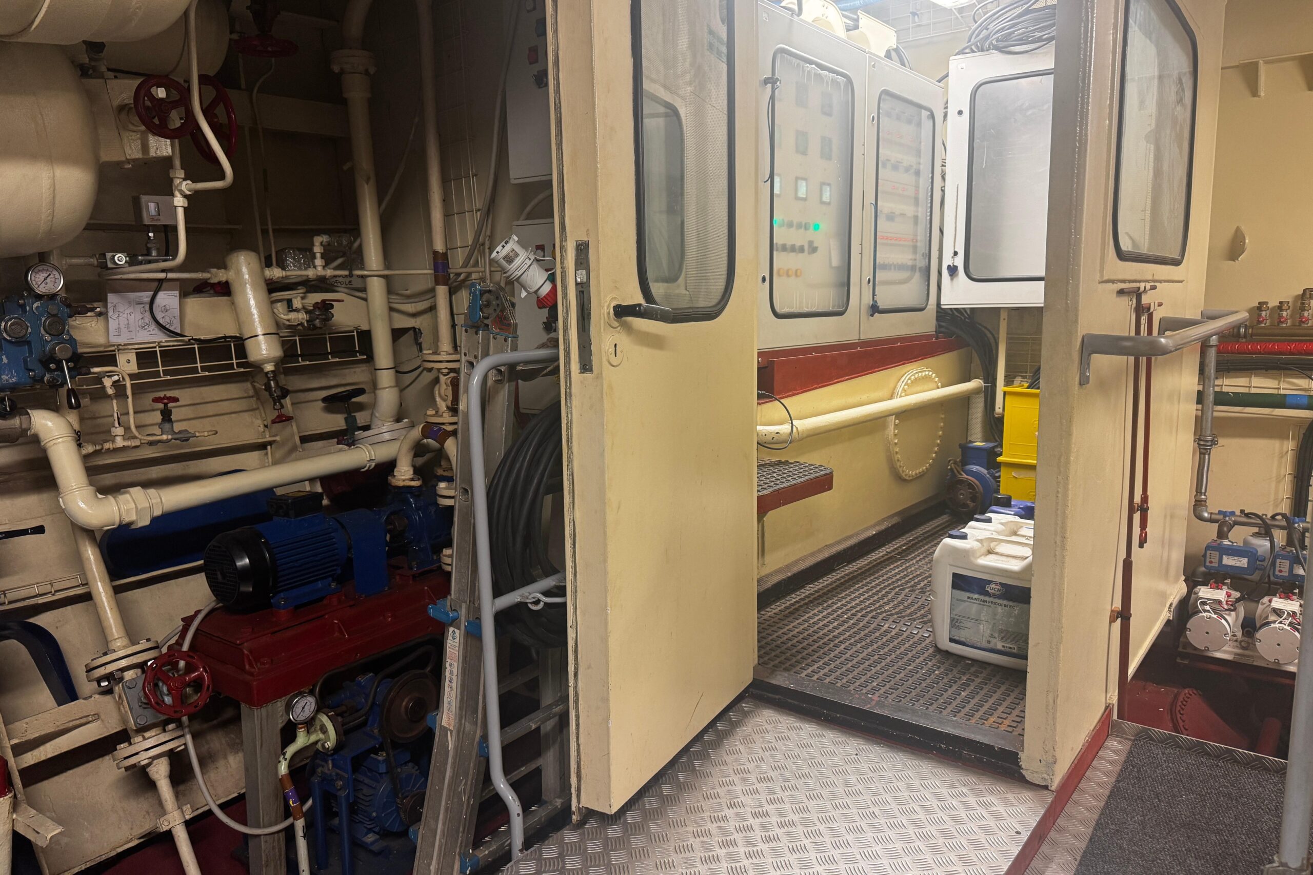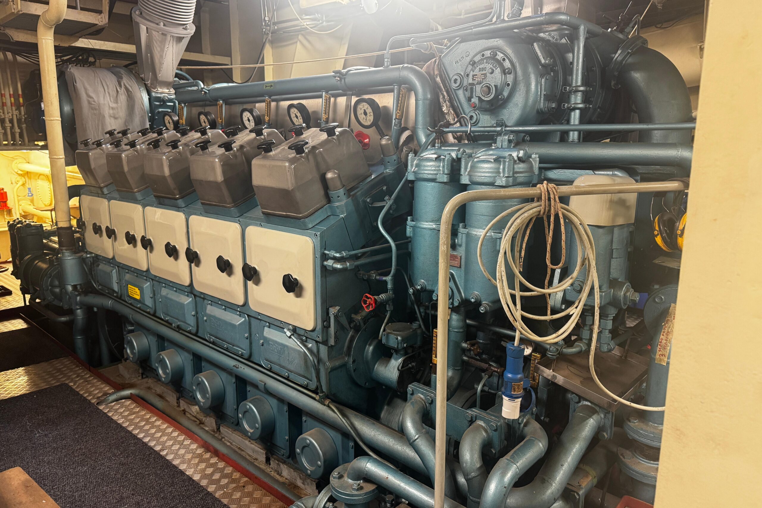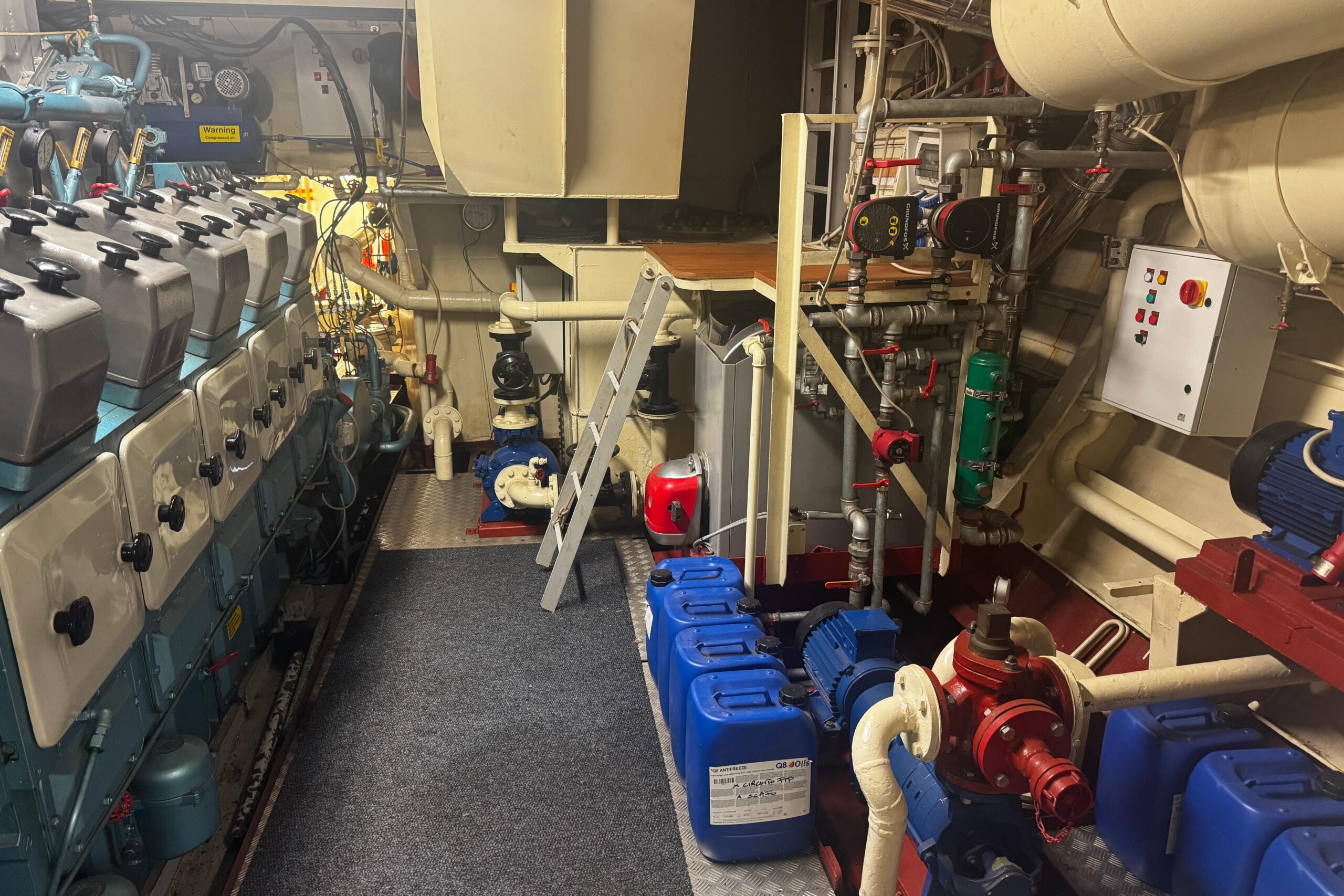 La nave è equipaggiata con un motore Alpha/MAN V10 turbo da circa 1700 HP, installato negli anni ’80, che attualmente funziona in maniera ottimale. La propulsione è completata da un’elica a passo variabile a quattro pale, soluzione tipica delle unità operative progettate per manovre precise e grande affidabilità.