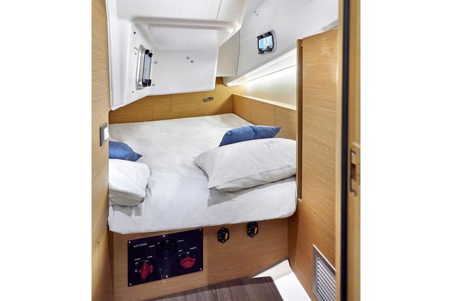 • Pagliolato interno su un unico livello, senza scalini • Tientibene rivestiti in cuoio • Illuminazione a LED • Grandi letti doppi rettangolari • Interno a scafo completamente rivestito • Oscuranti su tutti gli oblò e i passi uomo nelle cabine di prua e di poppa • Grande scelta di tessuti interni • Grandi volumi di stivaggio, cassetti e portelli antirollio con chiusure ammortizzate • Doccia separata dalla toilette (zona umida) nella versione a 2 cabine Tavolo carteggio • Ampio tavolo carteggio con finiture in finta pelle, piano apribile, comparto porta computer e portapenne, quadro elettrico, comoda seduta e libreria Cucina • Cucina ad «L» • Top mobili della cucina in laminato bianco • Lavello a 2 vasche inox • Cucina con fornelli e forno • Frigorifero 160 L Comode longue • Comode longue grande, amichevole e comode • Bracciolo rinforzato per il comfort Arredi interni • Essenze legni interni in Alpi® Teck o Cedro grigio, a scelta • Vernice di finitura interni anti-UV • Pagliolatos in laminato Rovere chiaro o scuro • Diverse finiture interne in legno o Alpi®