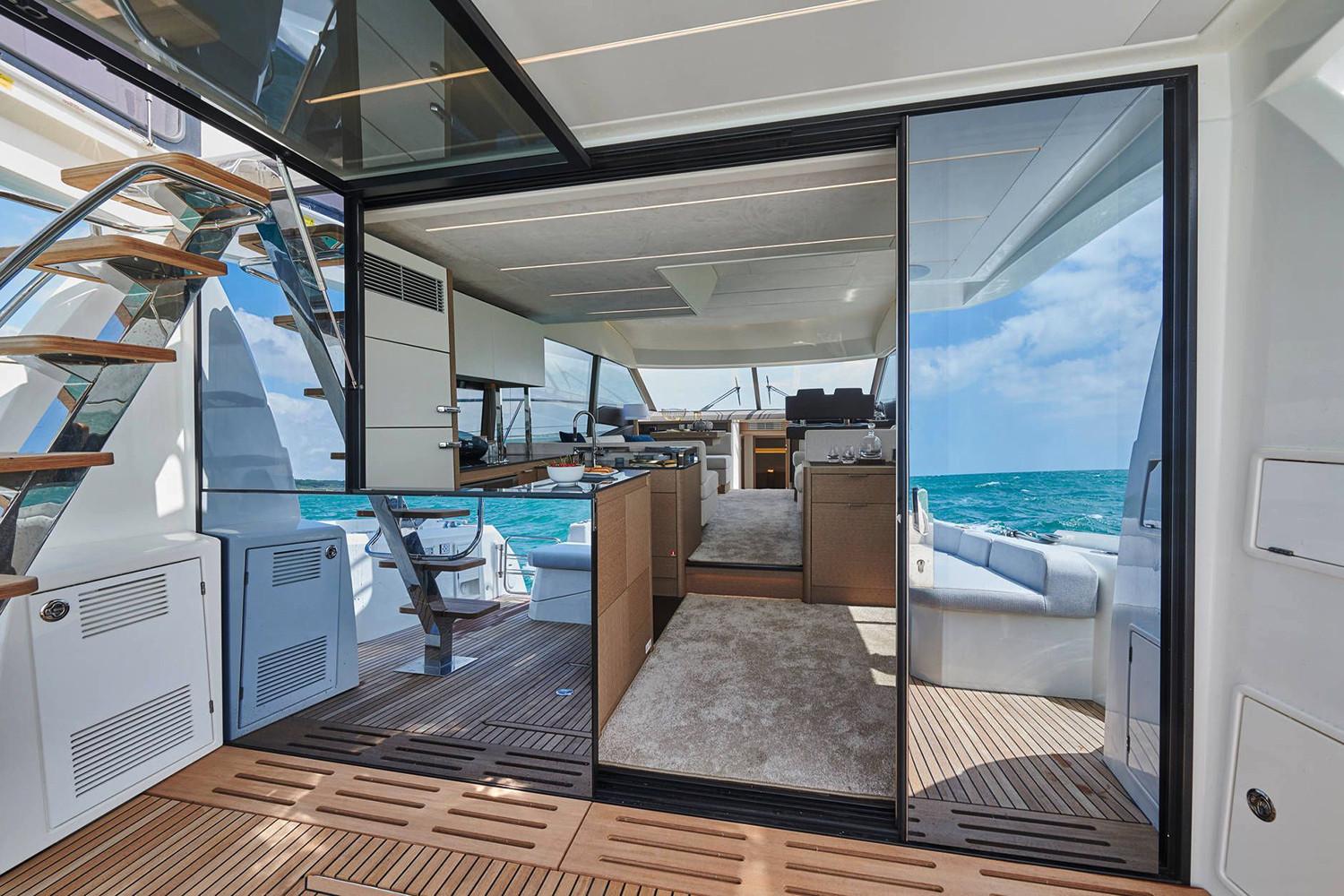 The PRESTIGE 590 is designed for comfort, featuring four well-appointed cabins and four heads, perfect for accommodating family and friends.