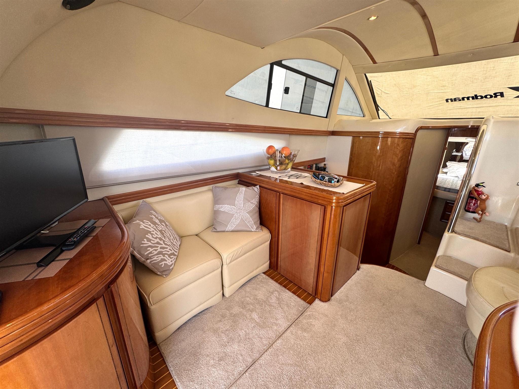 Rilassati nell’ampio spazio della Rodman 38. Con i suoi 12 metri di lunghezza, a bordo c’è spazio a sufficienza per rilassarsi. La poppa è abbastanza grande da ospitare un tavolo e dei posti a sedere aggiuntivi per una cena all’aperto. Da babordo puoi raggiungere facilmente l’area prendisole a prua della barca o salire di livello per goderti la vista panoramica a 360 gradi dal fly-bridge. La piattaforma per il bagno a poppa è di dimensioni generose,il ponte principale ospita gli interni, che sono completamente climatizzati e vantano il timone, una spaziosa cucina, un divano avvolgente e uno lineare, che possono ospitare facilmente da 6 a 8 persone. A bordo ci sono due cabine principali completamente climatizzate e dotate di bagno privato con doccia, che consentono un comfort totale, relax e, ovviamente, privacy. La cabina armatoriale si trova a prua dello yacht e dispone di un letto matrimoniale, mentre la seconda cabina ha due letti singoli che confinano con uno spazioso corridoio centrale, perfetta per gli spostamenti degli ospiti.trattamento anti osmosi 05/2024 barca con Perizia 2024 prese a mare passa scafi,boiler,frigorifero, illuminazione led int/esterna tendaggi interni,cuscinerie esterne,tagliando completo e Rina,bimini top,pacco batterie,vhf,tutto 2025