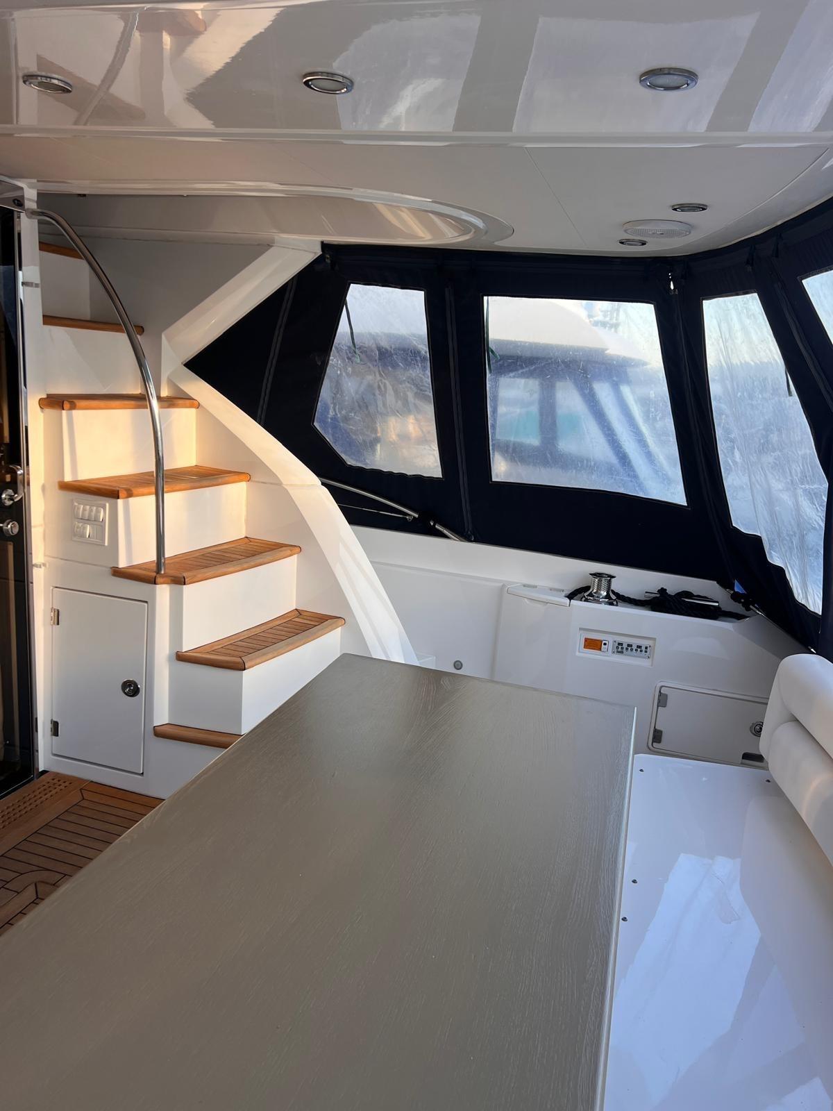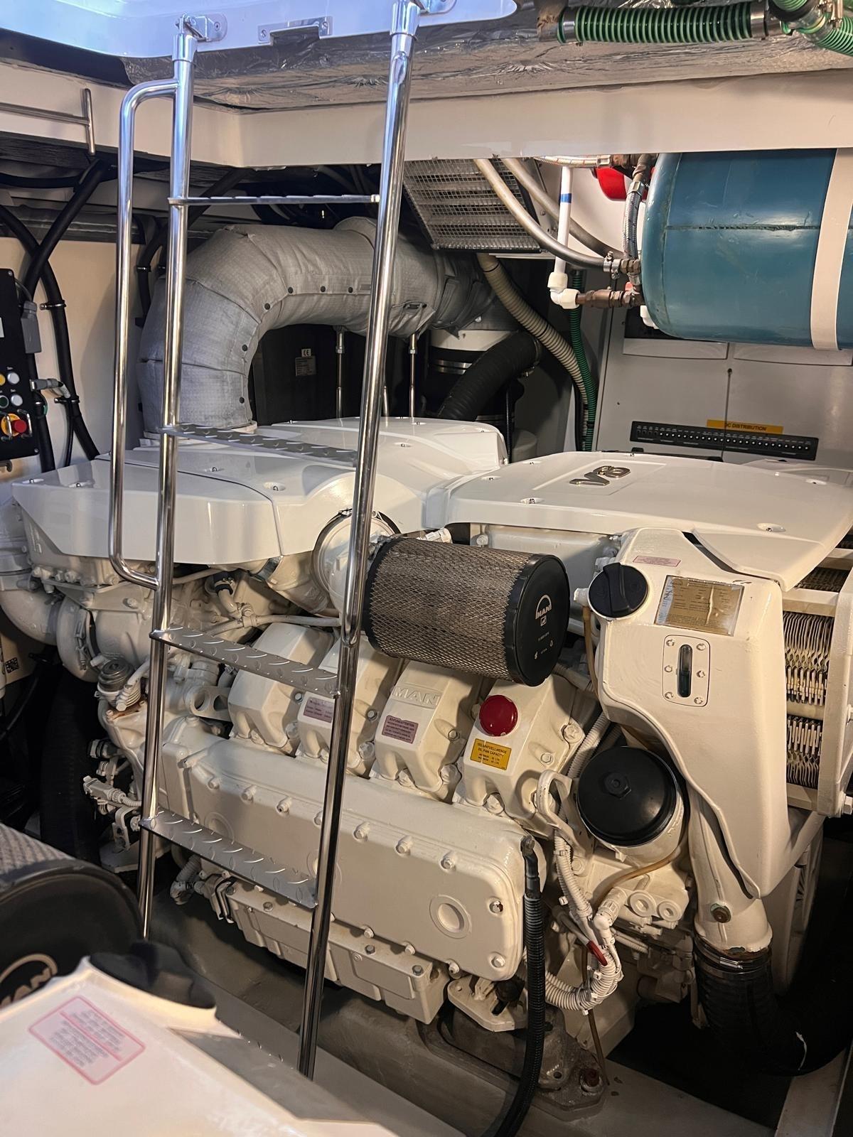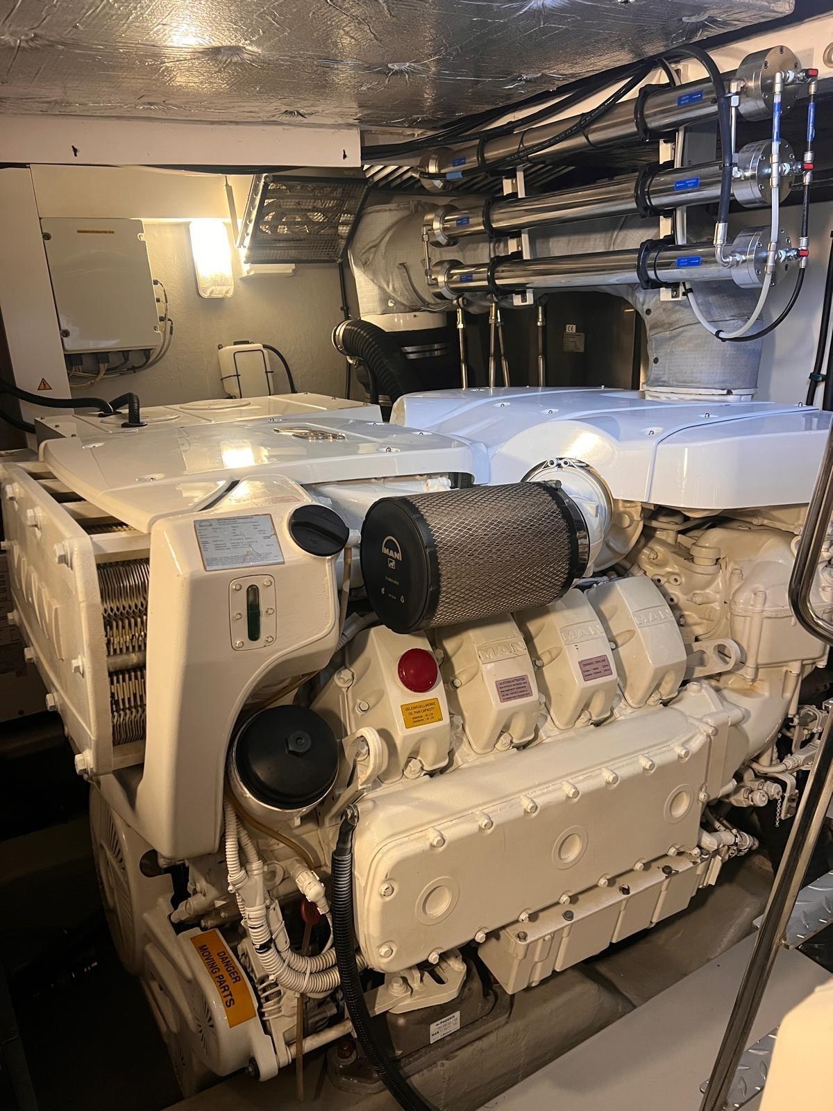 Le linee esterne sono eleganti e senza tempo, con spazi pensati per vivere il mare in modo rilassato e naturale, sia durante la navigazione sia in sosta. La motorizzazione è affidata a due MAN V8 da 1200 hp, che assicurano prestazioni fluide, ottima risposta e una conduzione sempre confortevole, mentre le manovre risultano semplici e precise grazie alla presenza dell’elica di prua e di poppa.