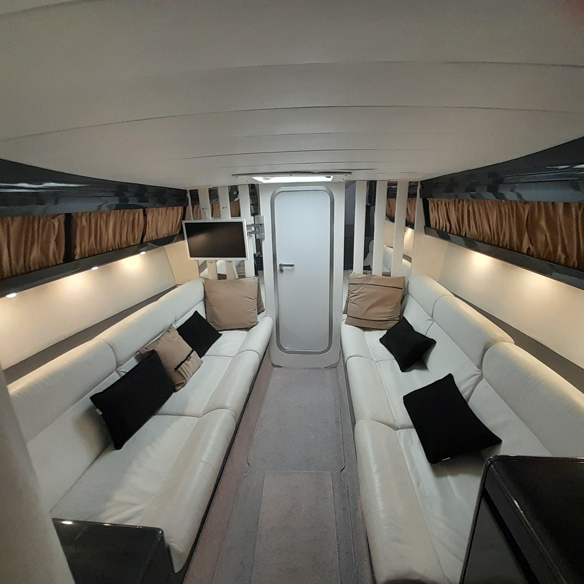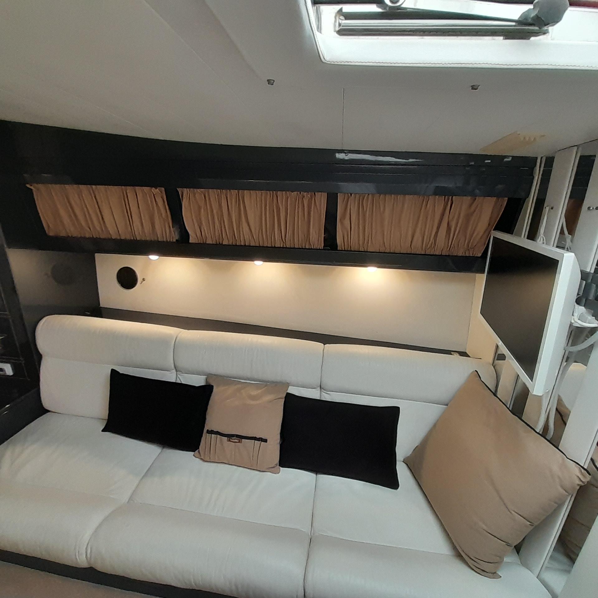Disposizione internaCABINA MATRIMONIALE A PRUA – DINETTE TRASFORMABILE – BAGNOAccessoriPASSERELLA – TENDALINO – CUSCINERIE COMPLETE NUOVE-